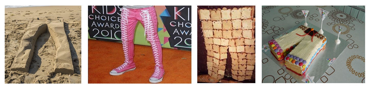 The DRAUP team began on the CAPTCHA pants by selecting wide-legged styles from the early 2000s (the years that the first CAPTCHAs were developed). We then pulled 23 images of pants—some photos and some fakes, some hot dogs and some legs—to serve as the print. Of the 23 images, 11 were made using AI, whilst the remaining 12 were pulled from internet archives.